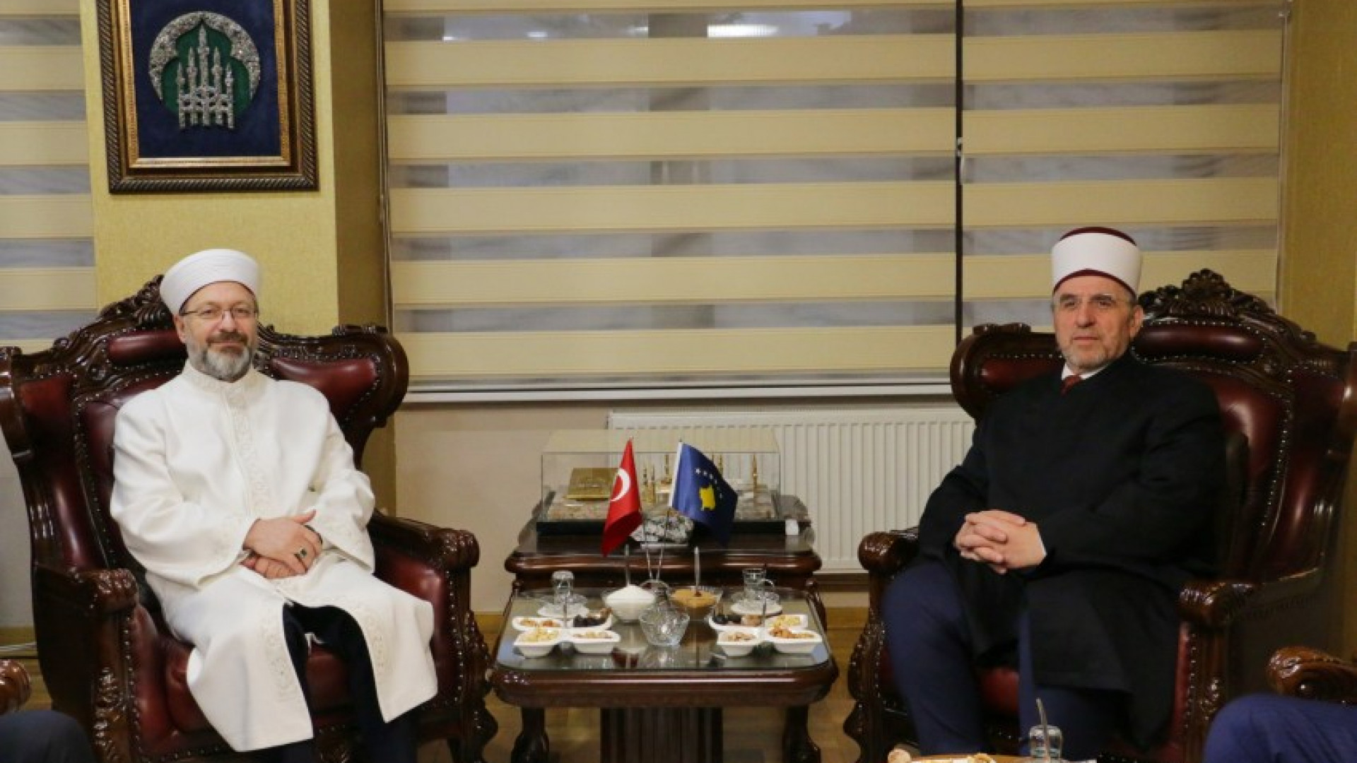 Kryetari i Bashkësisë Islame të Kosovës, Myftiu Naim ef. Tërnava, ka pritur sot në takim kryetarin e Bashkësisë Islame të Turqisë (Dijanet), prof. dr. Ali ef. Erbash. Myftiu Tërnava e falënderoi kryetarin Erbash dhe nëpërmes tij tërë Dijanetin për ndihmën dhënë Kosovës. “Kemi një bashkëpunim shumë të mirë me shoqatat turke që veprojnë në Kosovë, me zyrtarin për çështje fetare në Ambasadën Turke, si dhe me ambasadorin. Andaj shpreh falënderim të veçantë për Qeverinë dhe popullin turk, të cilët vazhdimisht kanë mbështetur Kosovën në situatat më të vështira, e po vazhdojnë edhe më tej që të mbështesin dhe të ndihmojnë për integrimin e Kosovës në mekanizmat rajonalë dhe ndërkombëtar. Një falënderim të veçantë dua ta shpreh për Dijanetin që po mundëson ndërtimin e Xhamisë Qendrore në Prishtinë, si dhe për gjithë përkrahjen që ka dhënë deri më tani” – tha ndër të tjera Myftiu Tërnava.