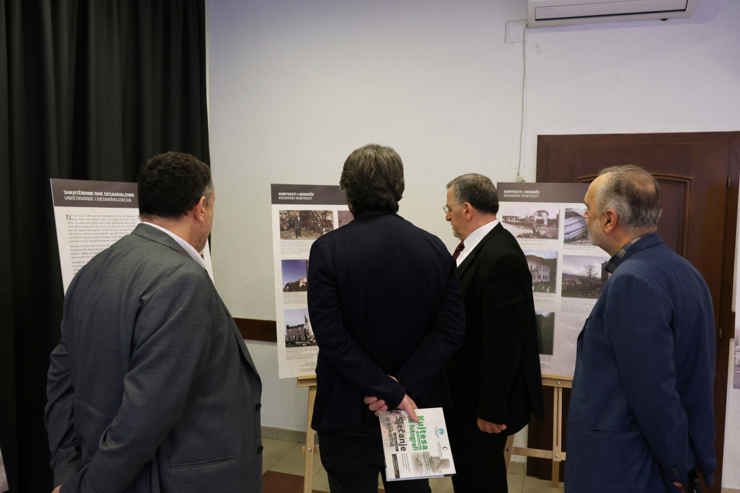 Kjo ekspozitë, përmes fotografive, pasqyron dëshmitë e shkatërrimit sistematik të objekteve fetare islame gjatë luftërave të viteve '90, duke shërbyer si kujtesë historike dhe thirrje për ruajtjen e trashëgimisë fetare dhe kulturore.