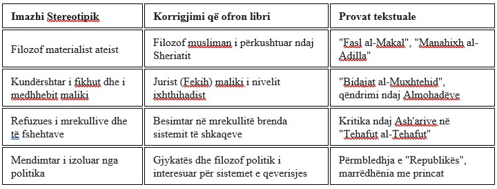 - Libri ia doli të prezantojë një imazh të plotë të Ibn Rrushdit, që refuzon thjeshtëzimin dhe shtrembërimin.