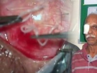 Një krimb gati 13 cm i gjatë iu hoq nga syri një pacienti të mërkurën në Indi.