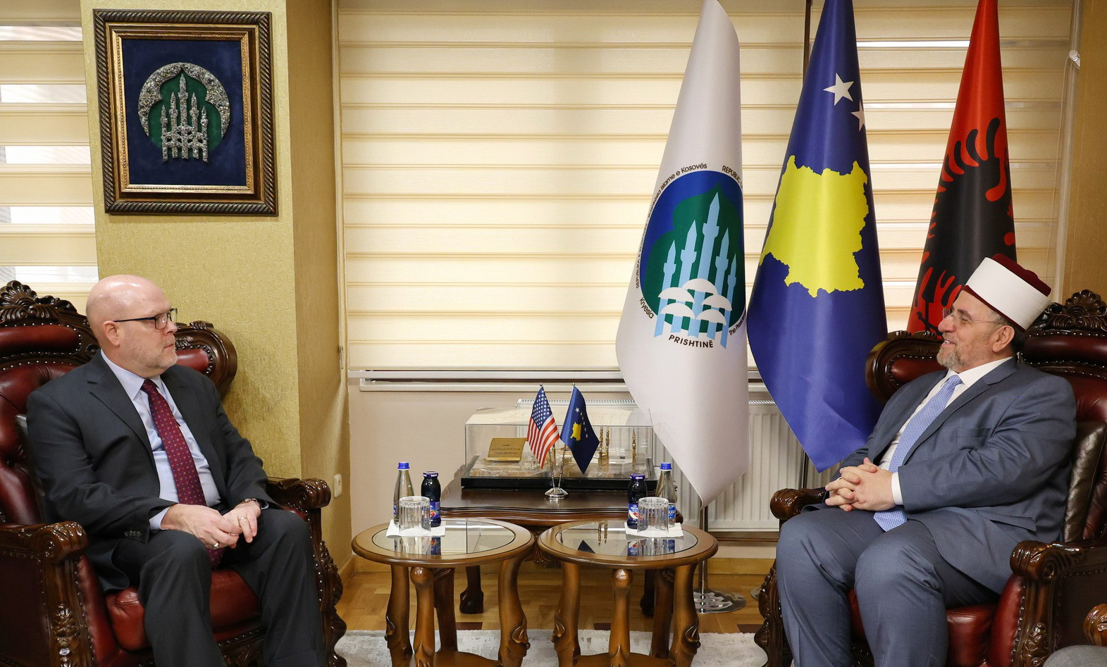 Kryetari i Bashkësisë Islame të Kosovës, Myftiu Naim ef. Tërnava, priti sot në takim lamtumirës ambasadorin e Shteteve të Bashkuara të Amerikës në Kosovë, z. Jeffrey Hovenier