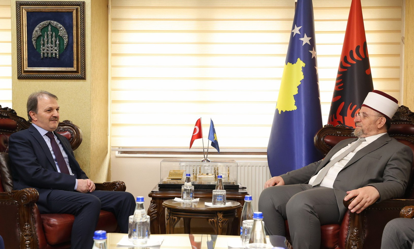 Kryetari i Bashkësisë Islame të Kosovës, Myftiu Naim ef. Tërnava, ka pritur sot në takim drejtorin e Zyrës Rajonale të Gjysmëhënës së Kuqe të Emirateve të Bashkuara Arabe me qendër në Tiranë, z. Aref Almenhali.