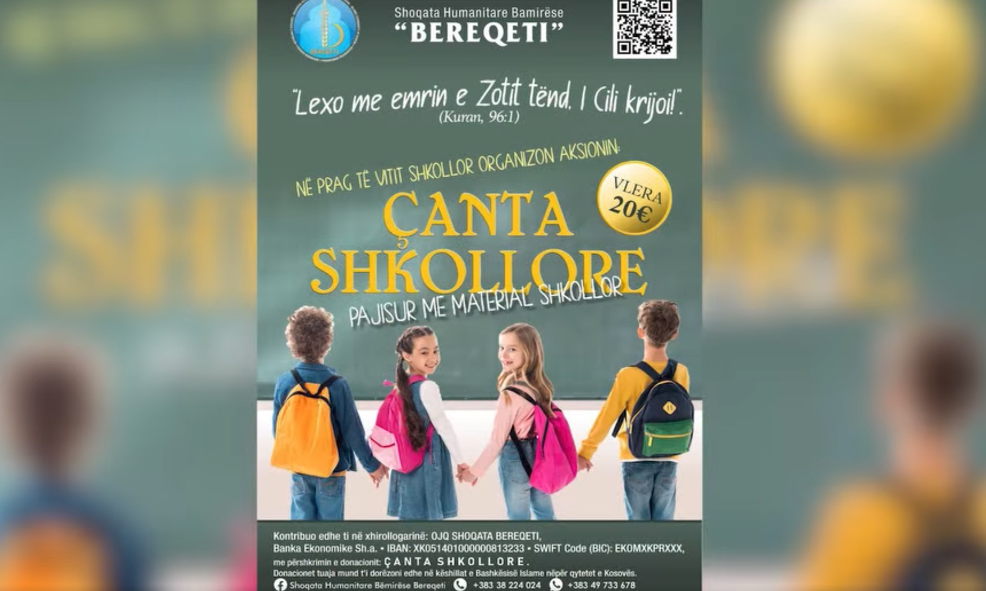 Me rastin e fillimit të vitit të ri shkollor Shoqata Humanitare Bamirëse "Bereqeti" ka shpërndarë rreth 80 çanta me materiale shkollore për nxënësit e tre shkollave fillore të komunës së Malishevës dhe Lipjanit.