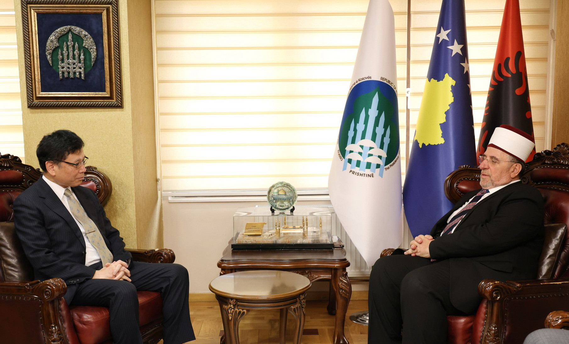 Kryetari i Bashkësisë Islame të Kosovës, Myftiu Naim ef. Tërnava, priti sot në një takim kurtuazie të ngarkuarin me punë në Ambasadën e Japonisë në Kosovë, z. Hiroyasu Tanigaki.